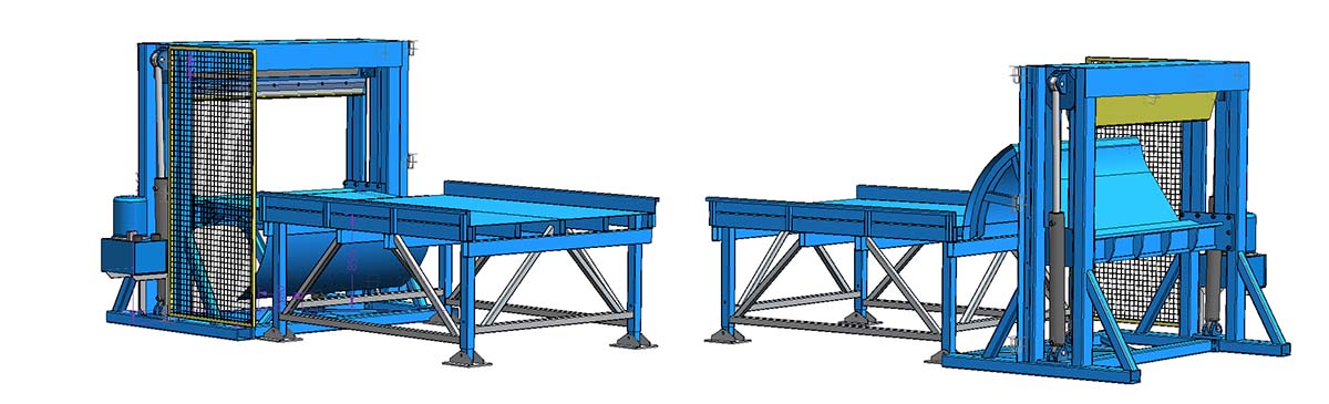 Kniven går sedan upp till viloläget och den kluvna rullen matas sedan framåt via transportören.