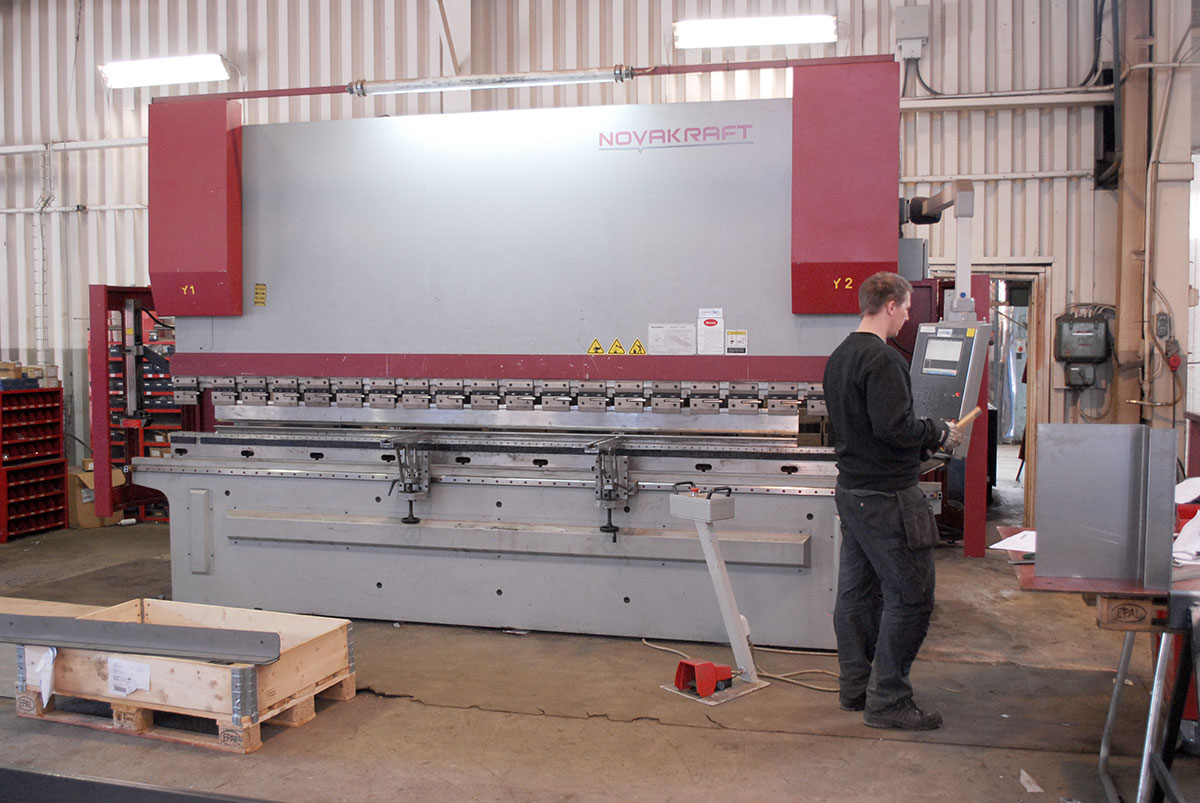 På Borins använder vi en Novakraft kantpress för bockning av plåt. Den har en presskraft på 250 ton och klarar plåtlängder på upp till 4200 mm. För valsning använder vi en Roundo rundvals.